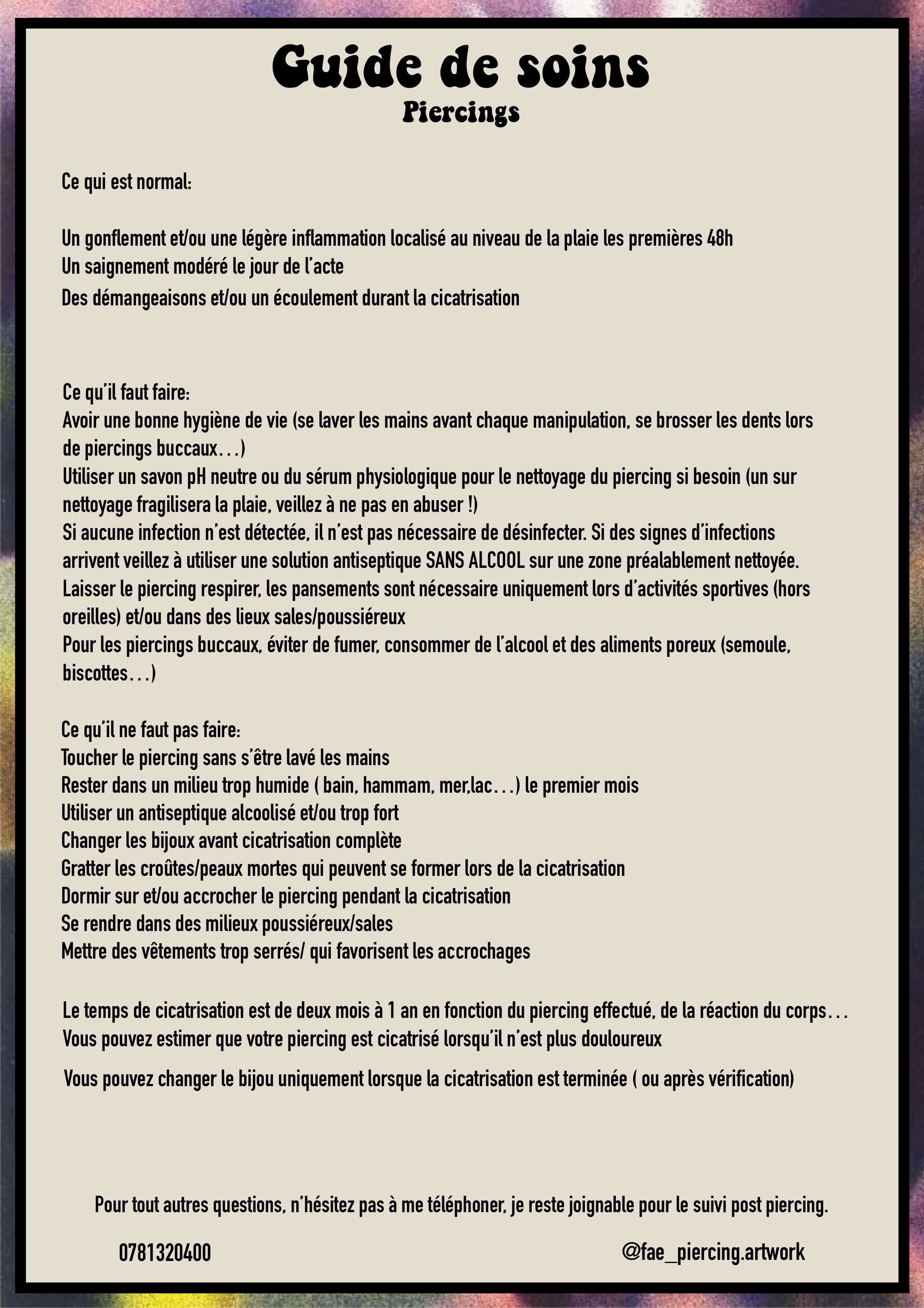 Une fiche de soin détaillée te sera donnée après l’acte 📥 Télécharger la fiche de soin
